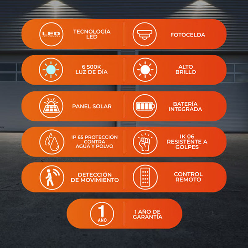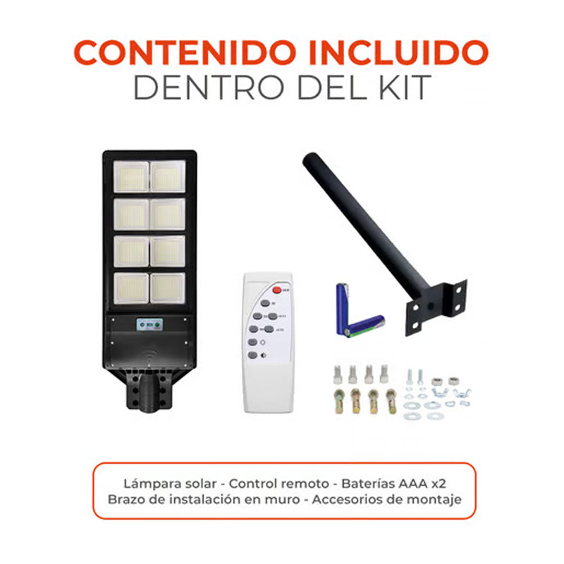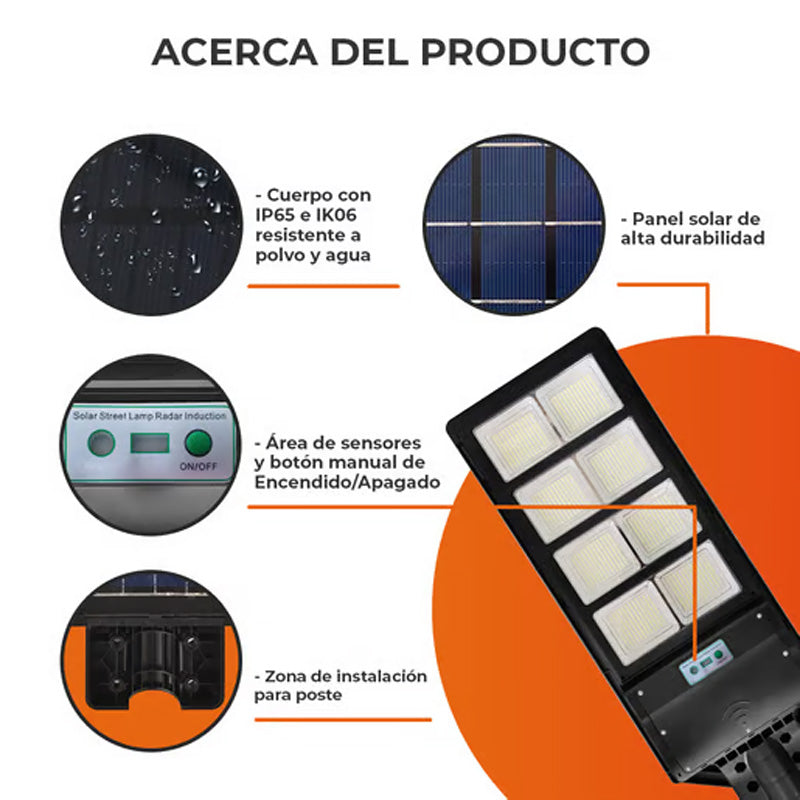 Lámpara Solar LED 80 W, Luz de Día, Sensor de Movimiento, Control remoto incluido, Batería Integrada, IP65, IK06, LED integrado