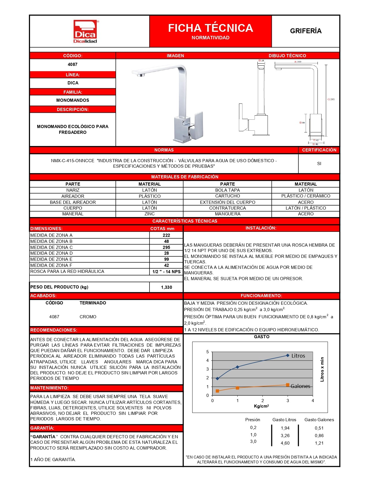 Presión de trabajo: 0,25 kg/cm2 a 3 kg/cm2.