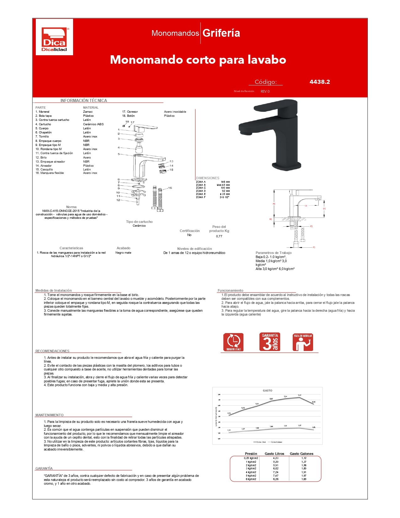 Monomando ecológico corto para lavabo