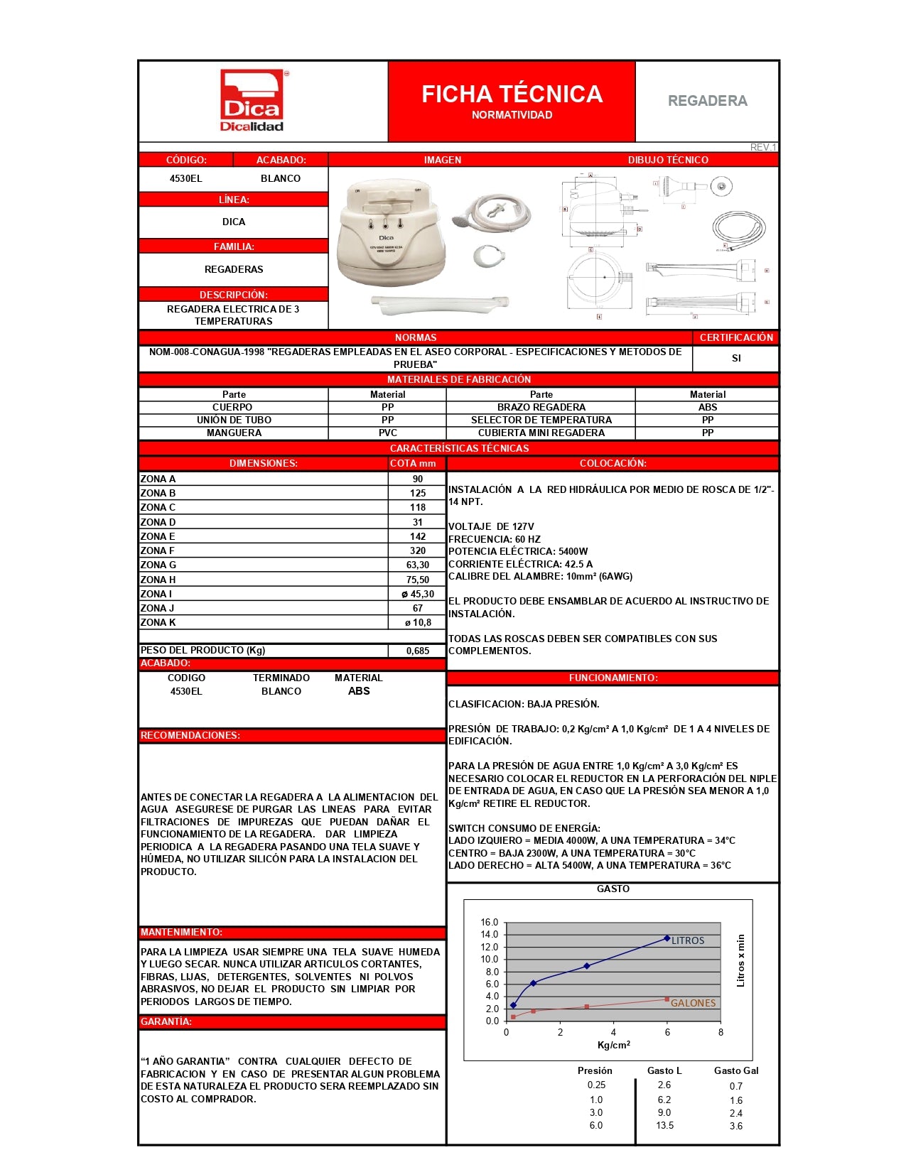 Regadera Eléctrica de 3 temperaturas con Brazo, Regadera de mano y Soporte.